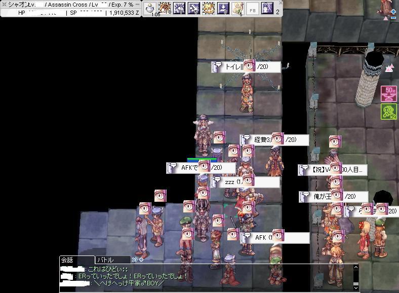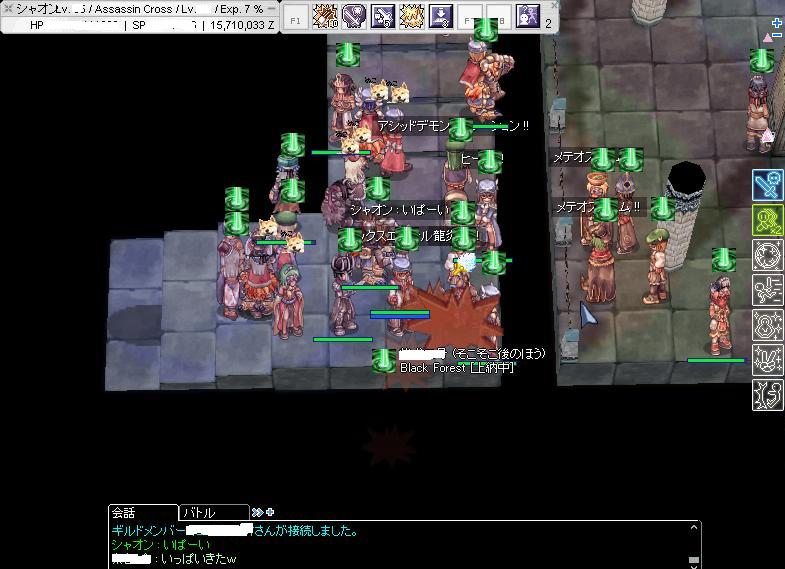 職構成が偏ってるイメージ。クリエ3とかどういうこと!?攻めにも防衛にもADSをフル活用。某スナのFA連射痛いっす。そして新世界の神のいるG。いつかGv中に倒したいもんです・・・。最近2砦が多く、塾を退けたりもしたらしい?確実に戦力UPしてきている。WSがマスターという珍しいG。