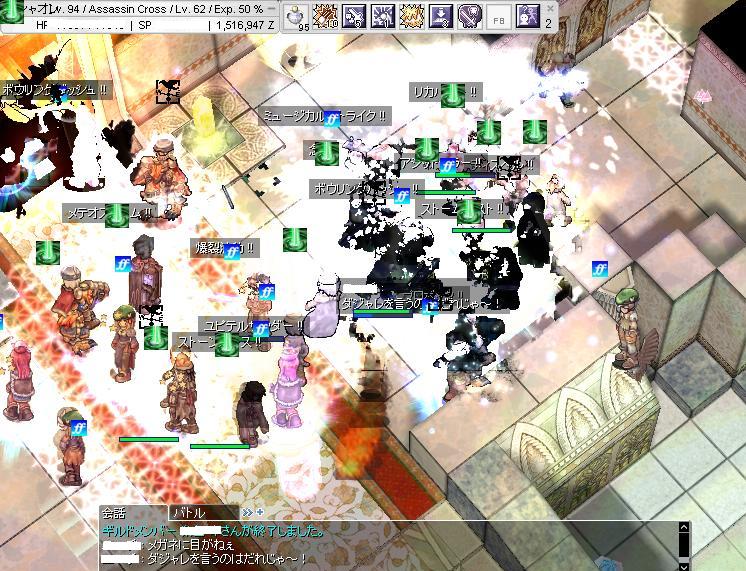 このレポは需要あるのか不明だけど簡潔に。 inするとF4攻めてる模様。防衛は猫と熊は確認。無風も全軍かわからなかったけどいたかな。 攻めには妖精、Fed、Del、オフェCRあたりがいたかな? EMCどうしようと考えててあんまし見てなかったのであやふや。 Gチャで「乱戦なのかどうなのかまとまってねーぞ!」とのこと。これは・・・ やっと取ったEMCフラグじゃー! ぇ?EMC今までなかったの?プギャーとか言わない。代理のGでEMCも考えてなかったので団結やらGメンの協力によりやっととれたのです・・・。 守護2は割ったとの報告は受けたので守護1方面でEMC。ぉおう・・・みんな来るwww そしてリログしてEMCすぐに撃てるように。 マスター職がEMCゲーというのに納得。 バリケ戦へ。ここでも2~3回EMCをしつつMAで敵へ突っ込む→ベース帰還→EMC準備みたいなことしてました。 そんなこんなでF5陥落。N4を確保しに移動。確保して、B4へ。ここも制圧してラインを引いて防衛に。 そしてさらに前衛を派遣へ。今回はEMCがあるのでB4からもうちょい人を送ったのかな? V4よさげらしくV4制圧→58分に割り。 最後LK2人(片方すけっとさん!)がV1を割りなんと4砦。 結果 V4,1 N4 B4 ネカフェのPCが使いにくくて泣いた。 参加した皆さんお疲れ様でした。また来週! |
