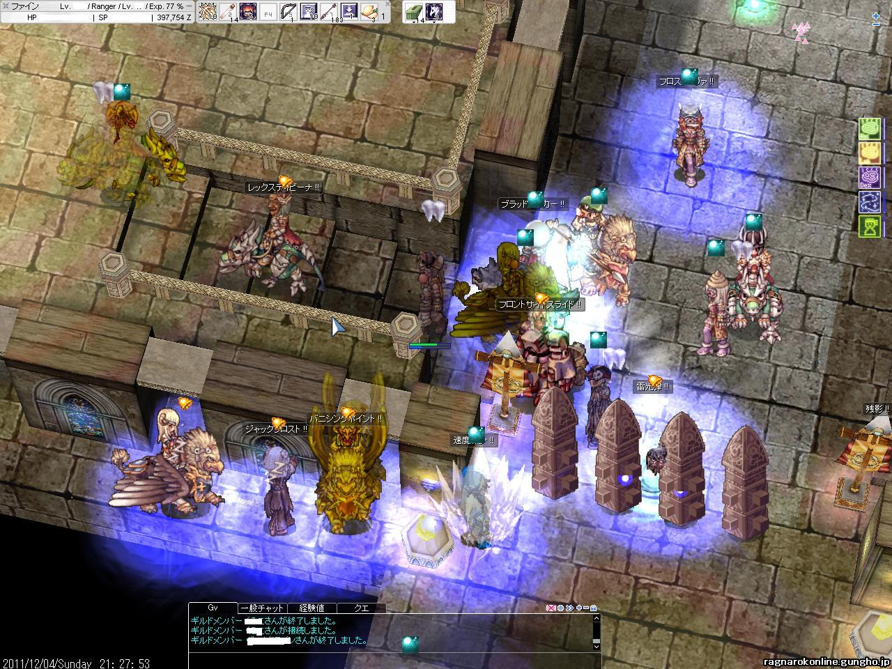 地元のスキー場も17日にオープン予定・・・!楽しみだなぁ・・・。 前日に鯖対抗Gvもあってか若干みんなお疲れ気味。 通常GvのほうはV地方を色々まわっていたのですが、途中から人が一気に居なくりました。 これはSEで戦闘してるのかなー?と思い、偵察をだしました。 F4だったかな?そこで 防衛側 塾Del vs 攻撃側 熊OSK の構図でした。(他にもGいたかもしれない・・・!間違えてたらすいません。) DWCも攻めで参加。熊OSKとも同盟を組んで突撃!しかし既に終盤戦で、3バリケ破壊の途中のようでした。この後牛丼に参加してF4からは撤退。 |